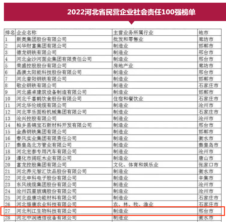 我司榮登2022河北省民營(yíng)企業(yè)社會(huì)責(zé)任100強(qiáng)榜單